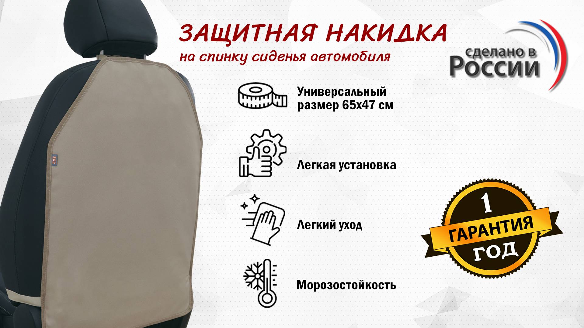 Накидка на спинку сиденья автомобиля из ткани Оксфорд. Цвет: бежевый. Промо-ролик.