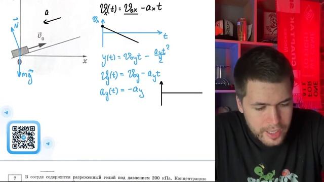 После удара в момент времени t = 0 шайба начала скользить вверх по гладкой наклонной - №20848