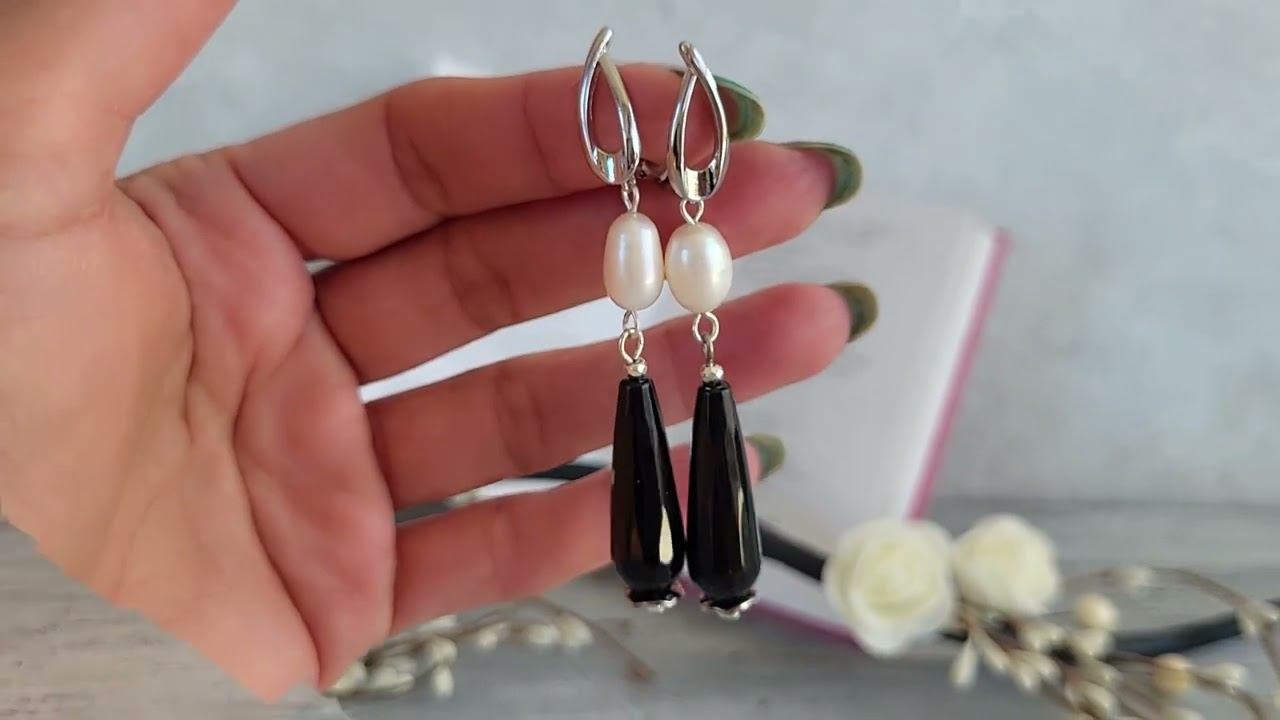 Серьги из черного оникса, жемчуга