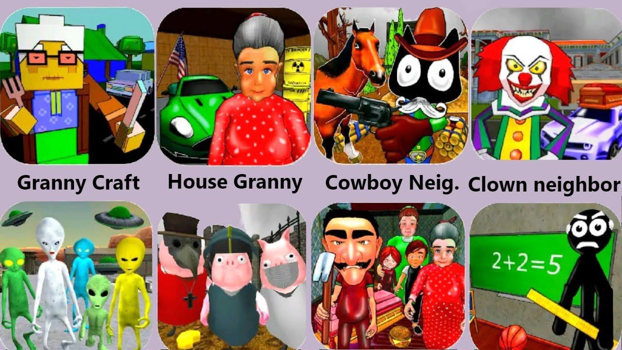 Granny Craft,Neighbor Family,Granny House,Clown Neighbor,Stickman Neighbor