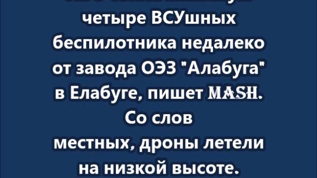 ПВО сбила минимум четыре ВСУшных беспилотника недалеко от завода ОЭЗ "Алабуга"