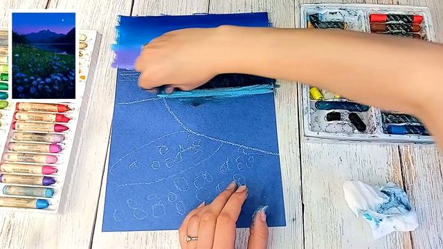 Лунные цветы. Ночной пейзаж. Рисуем масляной пастелью. Бесплатный урок рисования.