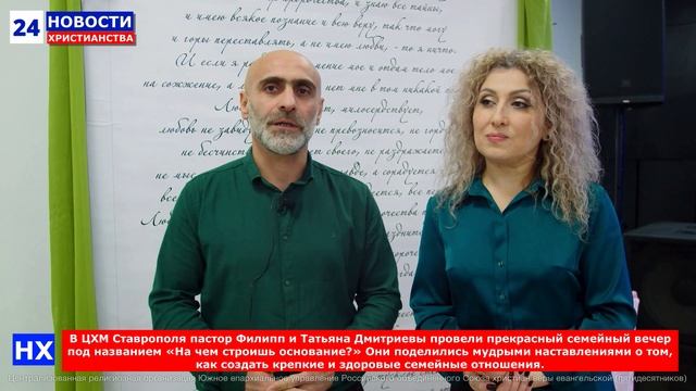 В ЦХМ Ставрополя пастор Филипп и Татьяна Дмитриевы провели прекрасный семейный вечер под названием «На чем строишь основание?» Они поделились мудрыми наставлениями о том, как создать крепкие и здоровые семейные отношения. Ссылка: https://t.me/eparhiaonline
