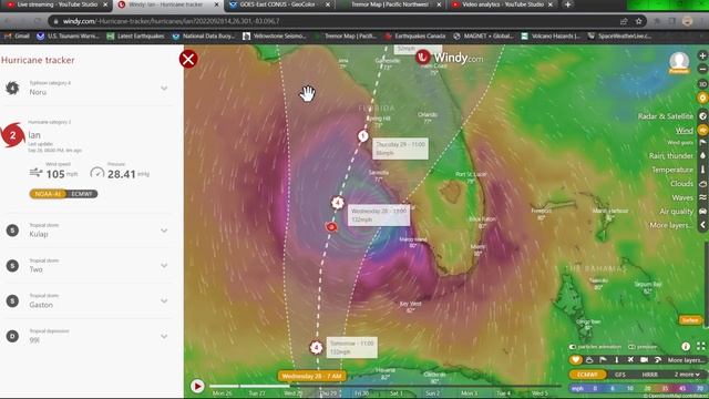 Hurricane Ian develops an eye. Earthquake swarm Northern Atlantic ocean. Monday night 9/26/2022