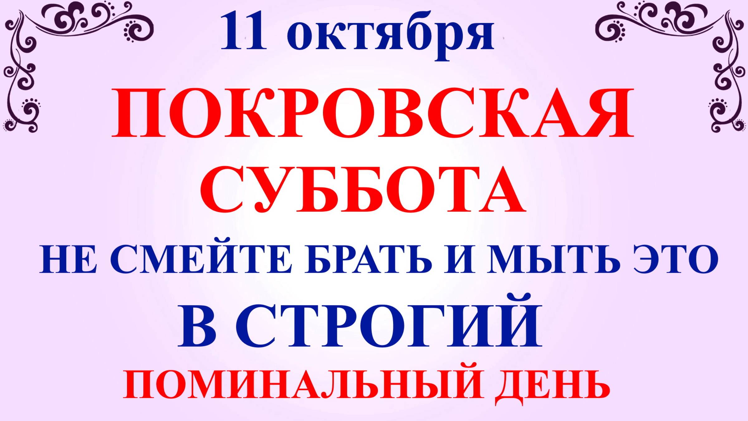 11 октября Покровская Родительская Суббота 2025 перед Покровом, Родительская Суббота, поминальный день. Сегодня отмечается народный праздник Харитонов День. Что нельзя делать 11 октября. Народные традиции и приметы 11 октября Покровская Суббота. В этом видео вы узнаете, что можно и нельзя делать в поминальный день 11 октября Покровская Суббота, какую молитву читать 11 октября в родительский день, народные традиции и приметы на Покровскую Субботу 11 октября, приметы погоды на Родительскую Субботу, 11 октября поминальный день Родительская Суббота. В 2025 году 11 октября Родительская Покровская Суббота проходит в официальный выходной день за три дня до праздник Покров Пресвятой Богородицы! Церковный Праздник является переходящим! Если Вам понравилось народный праздник покровская суббота, какой сегодня праздник , о чем молятся в родительскую субботу можно отправить по Viber, whats app, а также поделиться в социальных сетях vkontakt, odnoklassnik! Покровская Суббота 11 октября ссылка на видео на нашем Ютуб канале: https://youtu.be/wueKwdYM-wI ✅ Подпишитесь на Народные Праздники в Телеграм https://t.me/nprazdniku Благодарю за подписку! Подписывайтесь на канал прямо сейчас!❤️️❤️️❤️️ОБЯЗАТЕЛЬНО нажмите на колокольчик 🔔 (чтобы получать полезную информацию первым) С Покровской Родительской Субботой! Будьте здоровы!