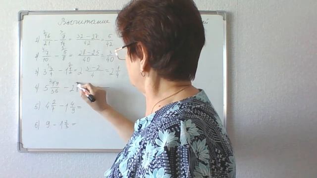 Решение примеров на вычитание обыкновенных дробей. Математика 6 класс.