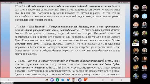 №7. 2-е Тимофею 3:3-9. Ведущий: Александр Борцов 26.07.2024