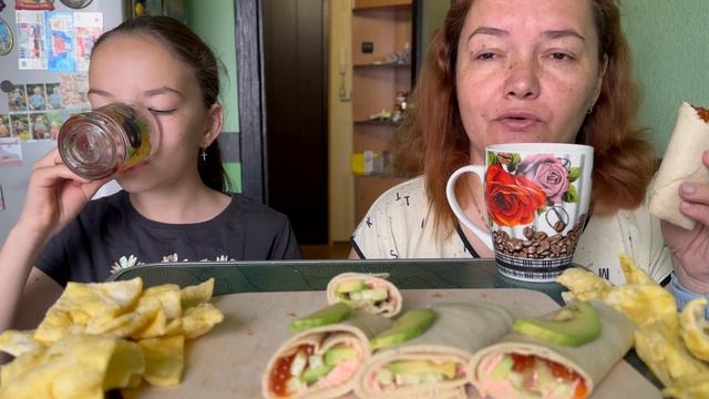 Мукбанг, овсяно блин с начинкой