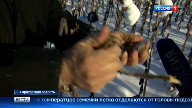 Уборка и очистка подсолнечника в снег (февраль 2017г.).