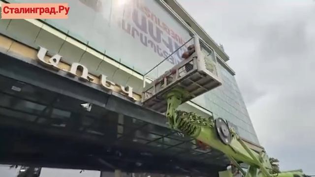 Мэрия Еревана снимает баннер с надписью «Свободу Самвелу Карапетяну» с ТЦ