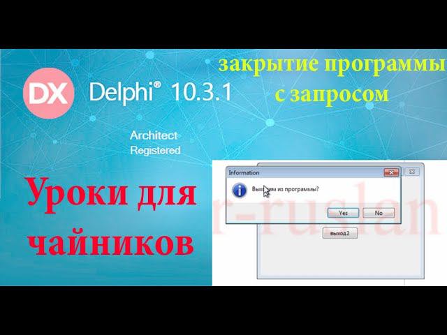 задание на delphi. три способа закрыть свою программу https://dear-ruslan.ru/new/urok/delphi/delphiurok27.php для выполнение задачи использовал компоненты и функции MessageBox, MessageDlg, Application.Terminate, FormCloseQuery, Button.
