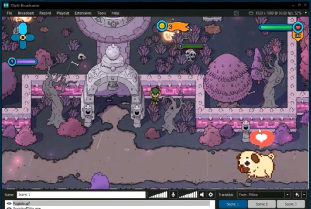 Мощная программа для трансляций любого типа: онлайн-игр, презентаций, вебинаров, ток-шоу и подкастов. Совместима с YouTube, Twitch и соцсетями. В эфир можно выводить картинку с внешних устройств, веб-камеры ПК, из вкладок браузера и даже подключать звонки по Skype и Zoom. Доступен богатый инструментарий графического оформления: замена или размытие фона, деление экрана, слои видео, слайд-шоу для пауз в эфире. Есть уникальная функция – интеграция предустановленных сцен, которая позволяет добавлять в трансляцию заранее записанные фрагменты. Технологии XSplit обеспечивают качественное изображение даже для требовательных игр, поэтому программу часто используют для игровых стримов. Плюсы: есть мобильная версия; можно стримить с игровых консолей; понятный интерфейс. Минусы: высокие системные требования; водяные знаки программы в бесплатной версии. Цена: есть бесплатная версия с ограниченным функционалом и пониженным качеством видео. Платный доступ – от 375 до 1 100 ₽ в месяц, при оплате годового подключения предоставляются скидки.