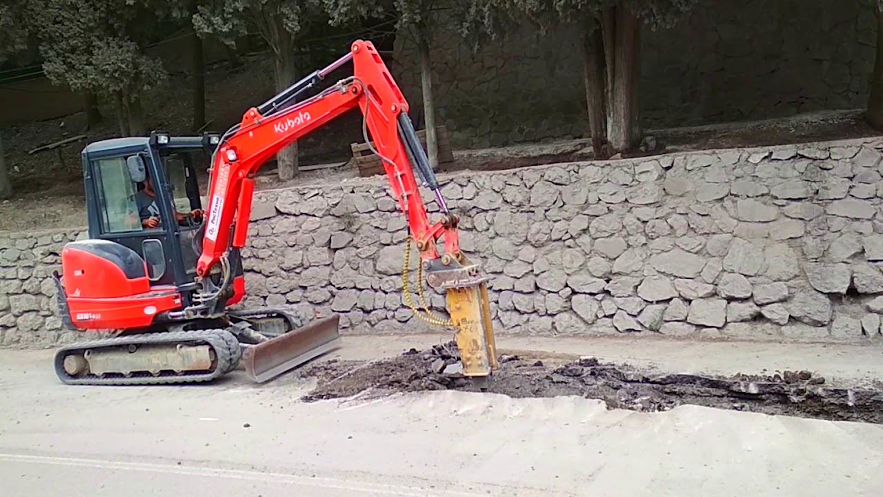Гидромолот Delta F-3 работает в крымском поселке Гурзуф недалеко от Международного детского центра «Артек». Работы по расширению дорожного полотна ведутся с использованием молота, смонтированного на мини-экскаваторе Kubota KX101 https://www.tradicia-k.ru/product/gidromolot-delta-f-3/