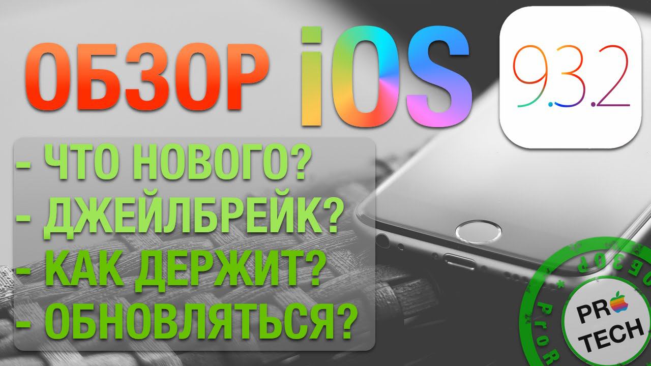 Полноценный обзор финальной версии iOS 9.3.2 для iPhone, iPod touch и iPad. Поговорим о нововведениях, времени автономной работы, джейлбрейке, багах (как же без них=) ) и ответим на извечный вопрос - «Стоит ли обновляться?». Группа Вконтакте: https://vk.com/protechru Twitter: https://twitter.com/protechru Вадим Ищенко Вконтакте: http://vk.com/arvizami Наш YouTube-канал: https://www.youtube.com/c/ProTechRu Обратная ссылка на ролик — https://youtu.be/8ZGjUufPxpw --------------------------------------------------- Есть свой канал на YouTube? Помочь в раскрутке, защите от страйков и заработке помогут эти ребята. http://join.air.io/protech --------------------------------------------------- Co-authored with AIR MCN http://www.dewolfemusic.com/trackdetail.php#!/?id=4854754&code=oUDxgd Co-authored with AIR MCN http://www.dewolfemusic.com/trackdetail.php#!/?id=4869932&code=Kg9spW Co-authored with AIR MCN http://www.dewolfemusic.com/trackdetail.php#!/?id=4916672&code=vicMWM