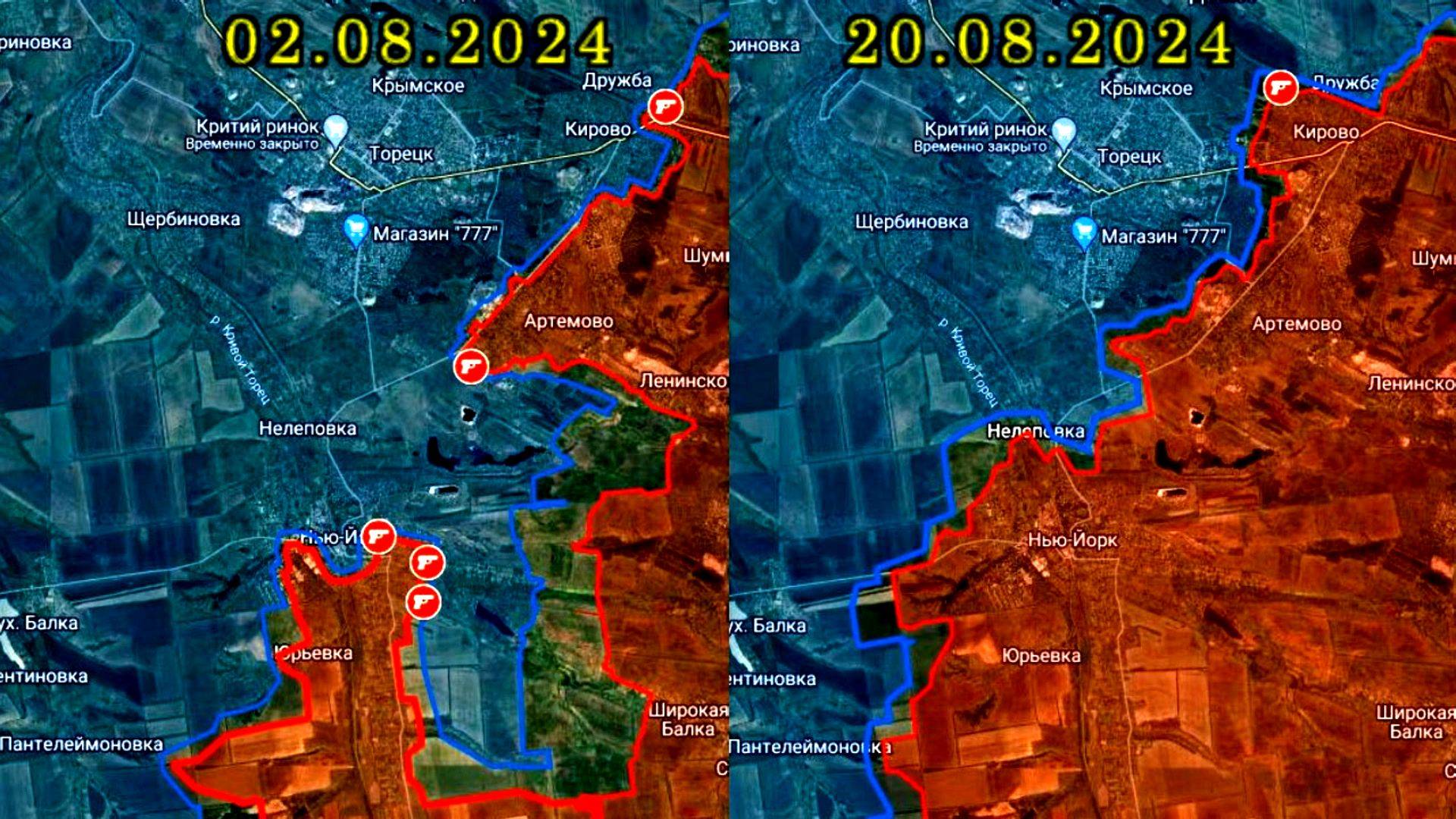 Карта боевых действий за Нью-Йорк со 2 по 20 августа 2024 года
