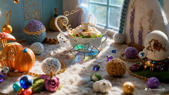 dreamina-2026-02-07-7477-pie in the sky, teapot, spoons are flyin...