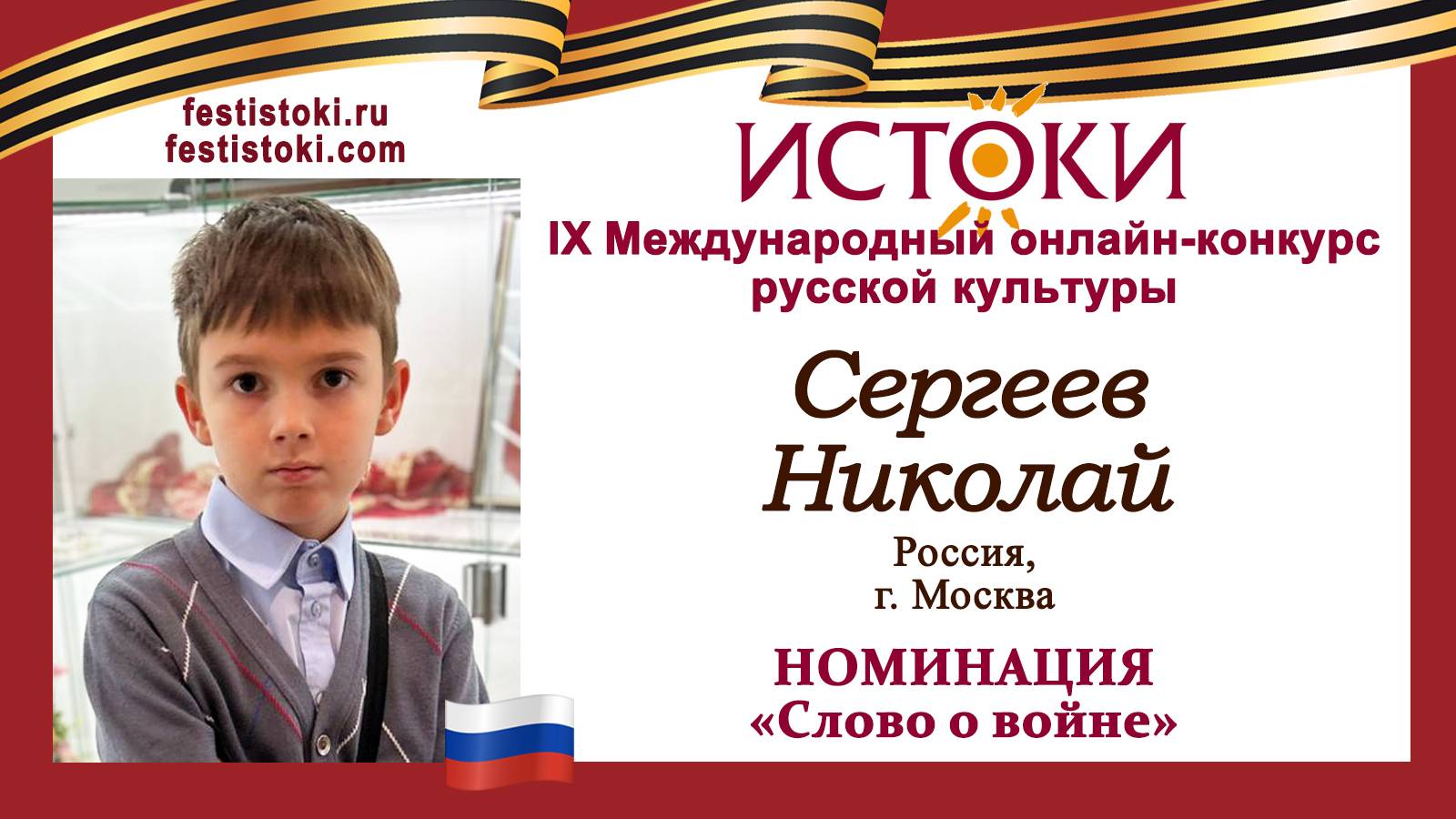 Сергеев Николай, 9 лет. Россия, г. Москва. "Баллада о капитане Гастелло"