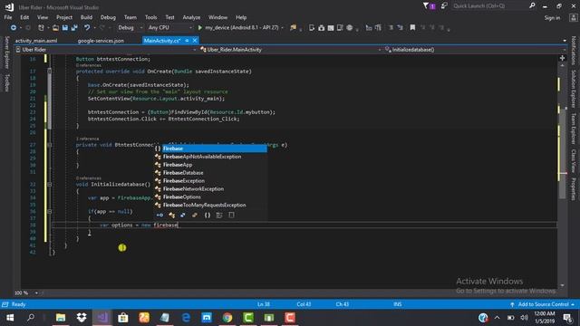 Xamarin Android Uber Clone - Setting Up and Initializing Firebase Database