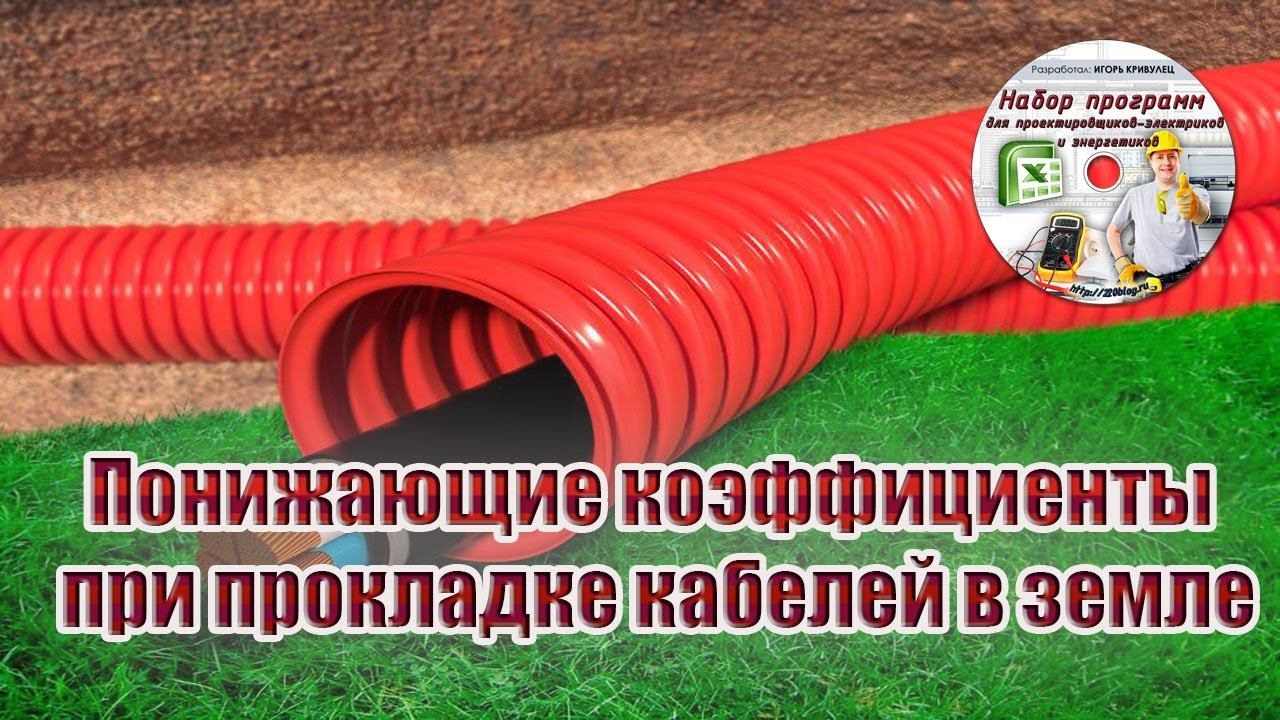 Какие понижающие коэффициенты применять при прокладке кабелей в земле?