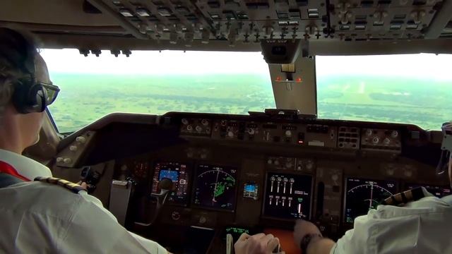 Боинг Boeing 747 во время захода на посадку в Африке Замбия. Посадка самолета Африка Замбия