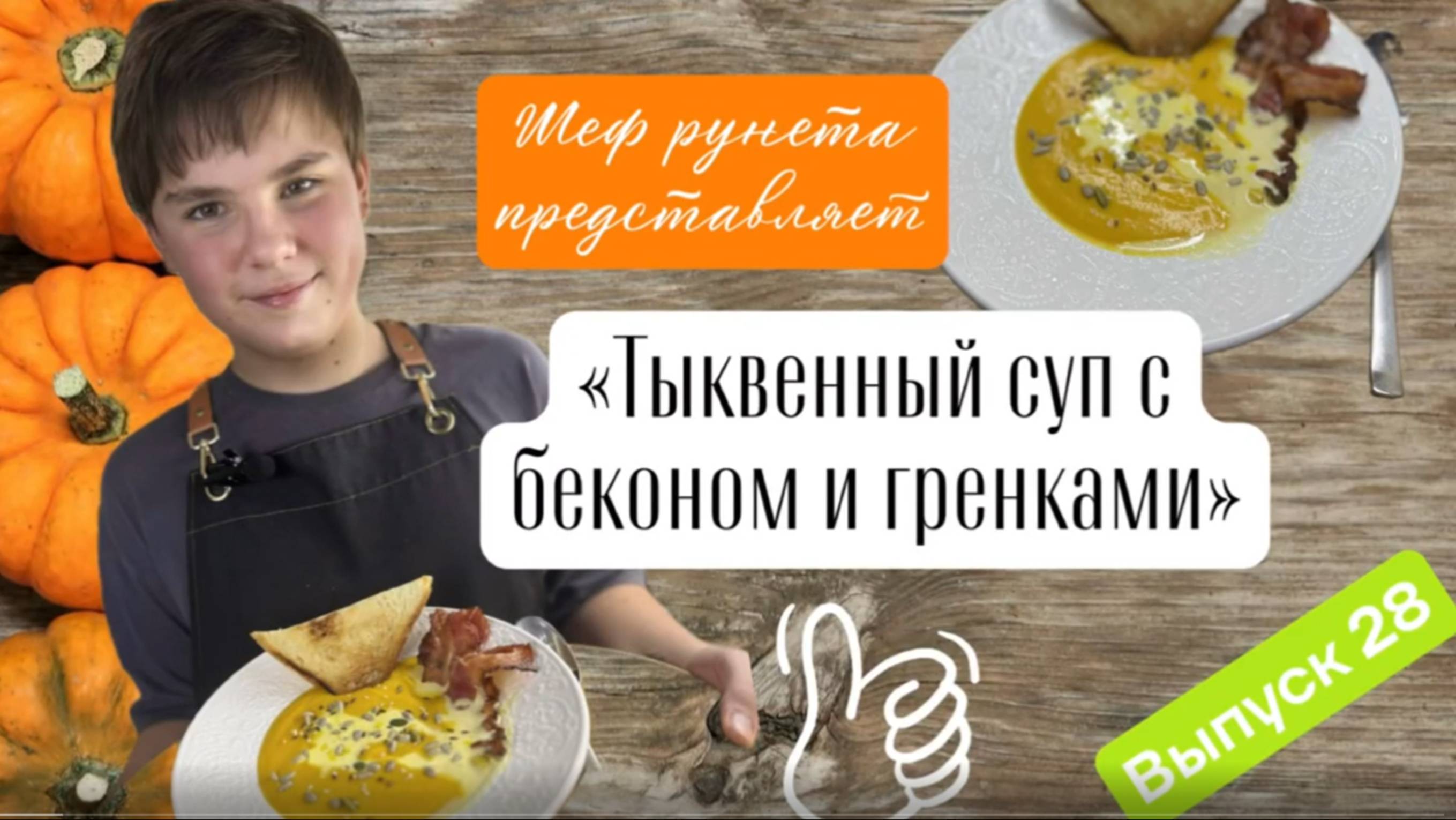 приготовим шикарный вкуснейший тыквенный суп с беконом и гренками! нам понадобится: 1 кг тыквы, 1 большая морковь, 2-3 луковицы, 2-3 зубчика чеснока, хлеб для гренок, 200 г бекона, 400-500 мл сливок, паприка, мускатный орех, соль, перец, растительное масло, микс семечек. Смотри мои видео, и я научу тебя готовить!