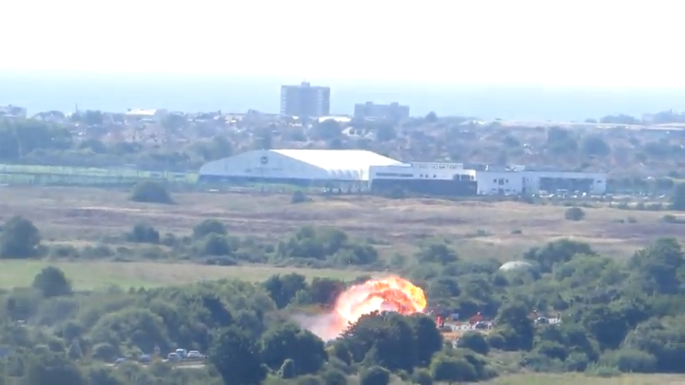 На авиашоу в Англии 22 августа 2015 года один из пилотов не справился с управлением и рухнул на шоссе, где двигались десятки автомобилей. #шоу #самолет #англия #катастрофа #новости #события #взрыв #смерть