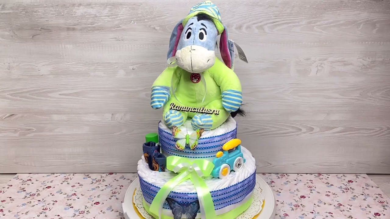 Торт из памперсов для мальчика с мягкой игрушкой Выбрать и купить торт из памперсов можно перейдя по ссылке https://ranunculus.ru/podarki-na-rozhdenie-rebenka/torty-iz-pampersov/ Сайт https://ranunculus.ru