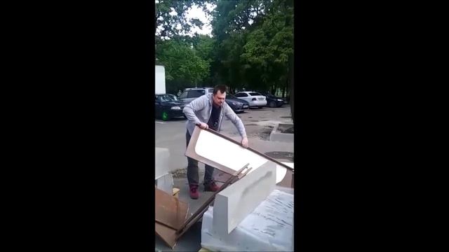 Мужик ломает бытовой мусор на помойке. #идиот #фейл #неудача #дебил #прикол