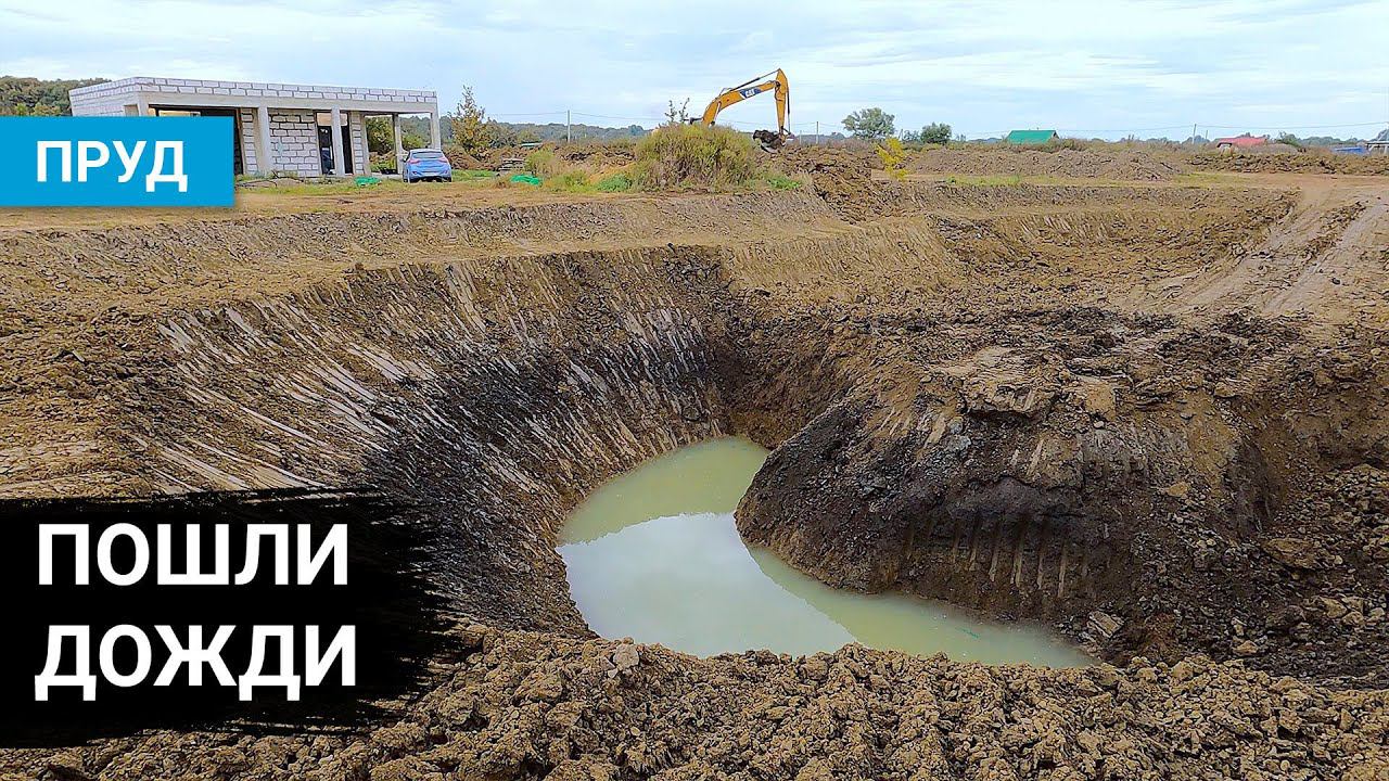 Землю некуда девать, дожди приостановили строительство пруда. День 5