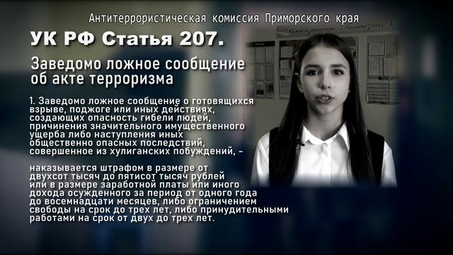 Профилактический видеоролик, подготовленный по инициативе антитеррористической комиссии в Приморском крае.