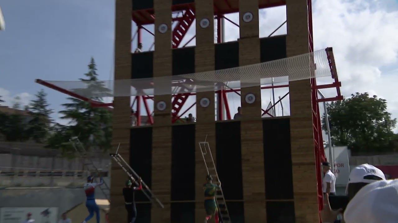 Подъем по штурмовой лестнице на учебную башню. ЧМ по пожарно-спасательному спорту. Стамбул, Турция