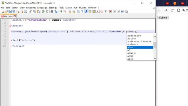 Minute Coding JavaScript Lesson 11 alert and addEventListener