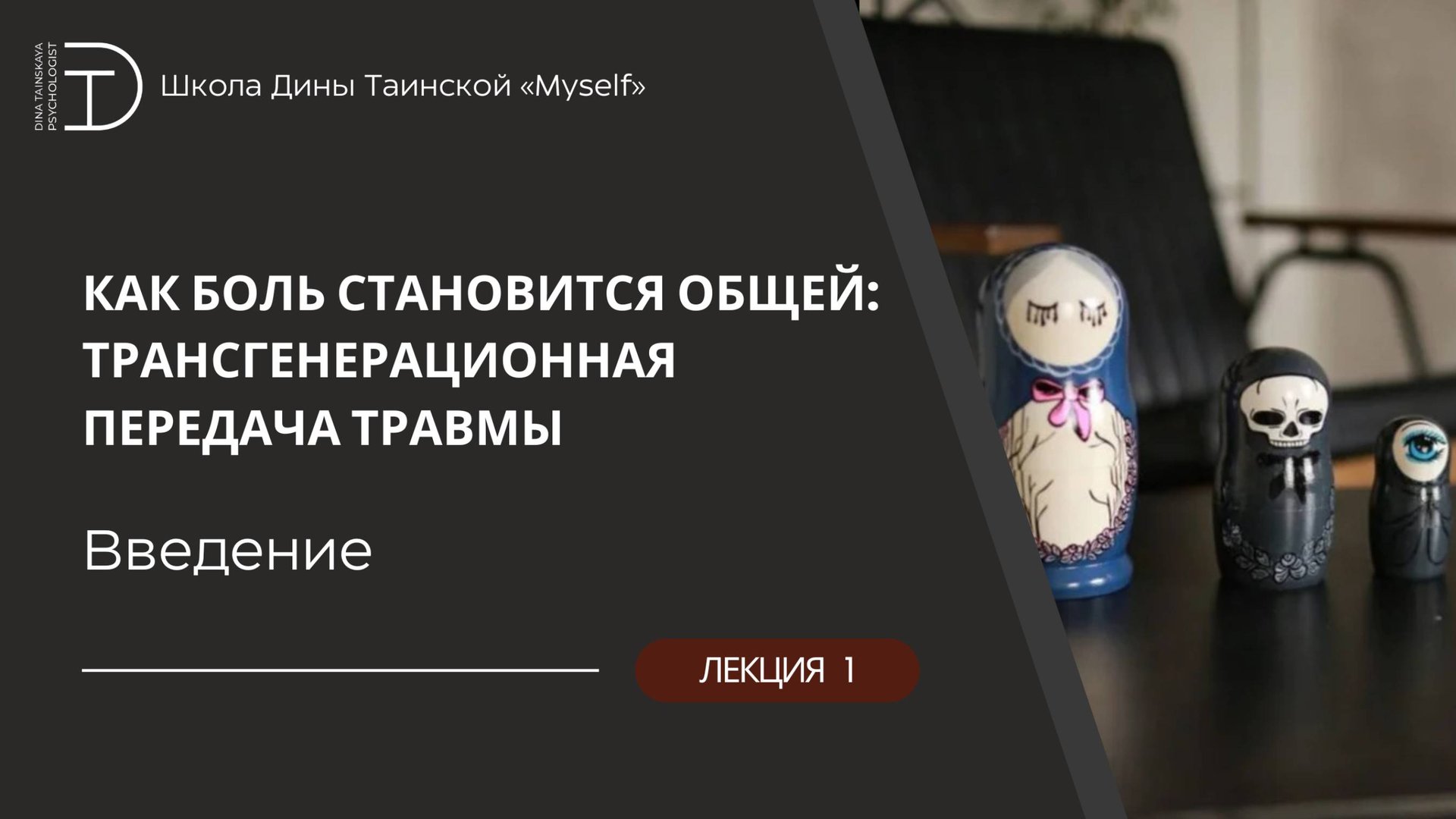 Цикл вебинаров «Как боль становится общей: трансгенерационная передача травмы» https://shop.dinatainskaya.com/kakbolstanovitsaobshey Присоединяйтесь к сообществу в социальных сетях: Телеграм — https://t.me/dinatainskaya ВКонтакте — https://vk.com/dinatainskaya.myself
