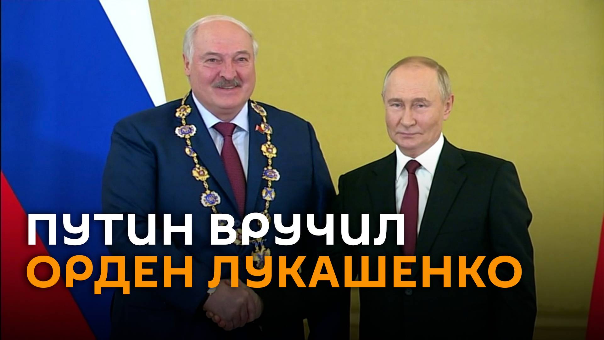 Российский президент Владимир Путин вручил белорусскому лидеру Александру Лукашенко орден Святого апостола Андрея Первозванного на торжественной церемонии в Кремле. Президент РФ подписал указ о награждении Александра Лукашенко в августе текущего года. Этой награды он был удостоен за выдающиеся заслуги в развитии отношений между Минском и Москвой в духе стратегического партнерства.