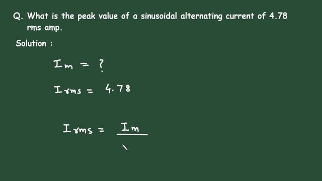 What is the peak value of a sinusoidal alternating current of 4.78 rms amp.