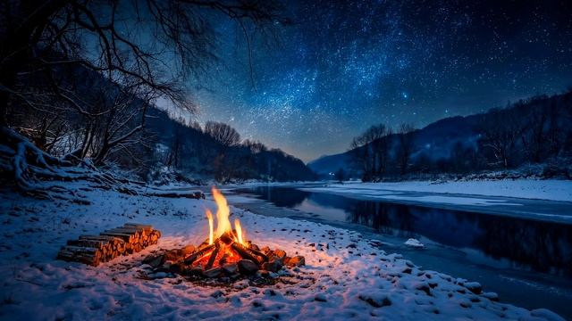 Зимний Костёр под Звёздным Небом. Идеальный Фон для Сна.