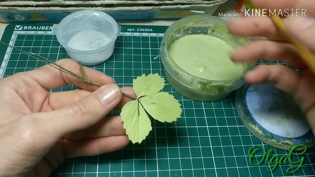 Листья Земляники из холодного фарфора. Пояснение к видео: присыпала вайнер детской присыпкой; для маскировки проволки - жидкий холодный фарфор; краска - Мастер класс травяная зелёная, кадмий лимонная. Между этапами хорошо просушивать.