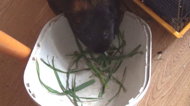 Морская свинка Блэкки и Белочка травку вместе едят май2022 Таня Долгова Белка