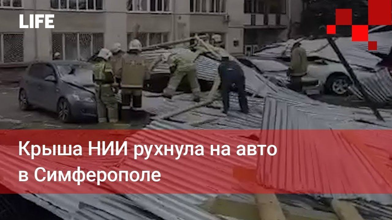 Крыша НИИ рухнула на авто в Симферополе