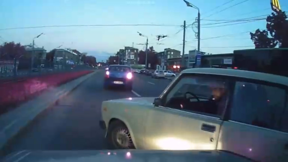 Украина. Неадекват на жигулях сцепился с автором, возник конфликт. После того как водитель жигуля уехал с нарушением пдд , в конце ролика его настигла кара в виде дтп.