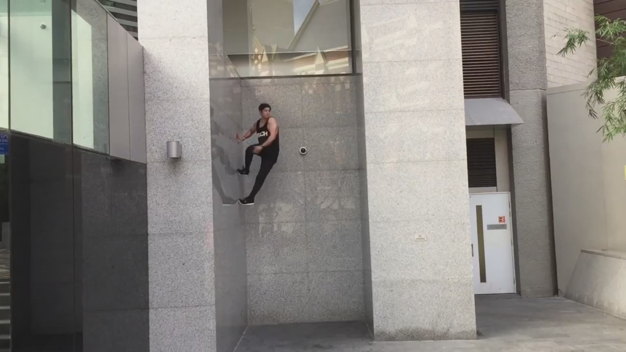 Парень прыжками забирается на отвесную стену при помощи только своих рук и ног. #паркур #ниндзя #стены #круто