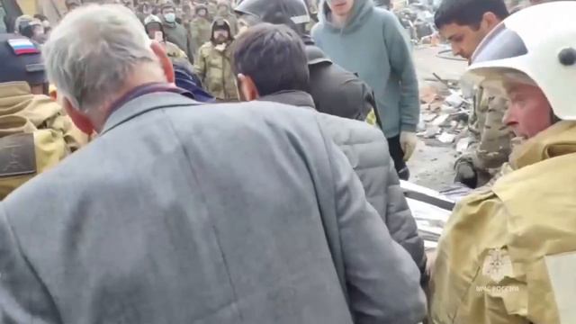 Кадры спасения мужчины из-под завалов разрушенной части дома в Белгороде