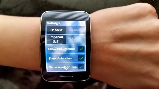 Do you want to see the Weather? The coolest Weather ANIMATED clock in town is here! See the weather every time you look at your watch... see it raining, snow falling, see the thunders and the wind. See the beautifull sun and the moving clouds. Features: - Time and Date display - 12 / 24 hour format - Battery indicator - WiFi indicator - Bluetooth indicator - New notifications count - Full current weather info - 3 day Forecast - Weather condition - Changeable colors - Imperial / Metric Settings - Show/Hide Background - Show/Hide Weather Icon How To: - To open Setting - Double Tap on the clock digits - To open Full Weather info and 3 day Forecast - Double Tap on temperature digits - To close Full Weather info and 3 day Forecast - Double Tap on Full Weather info window Coming soon on Samsung Gear Apps