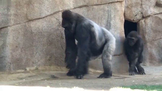 Молодая обезьяна шлёпнула по спине более старшему примату и убежала. #прикол #горилла #обезьяна #троллинг