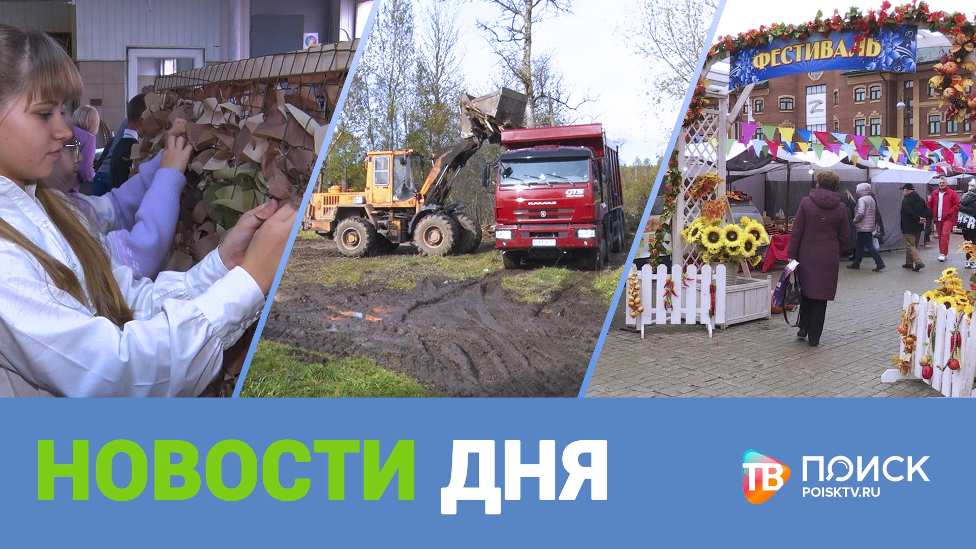 В Туркмене работает спецтехника. В поселке сносят старые ветхие строения и вывозят строительный лом. В округе продолжается благоустройство общественных пространств. Масштабные работы завершают на улице Евдокимова. Своих не бросаем. Клинчане-волонтеры плетут маскировочные сети, изготавливают носилки, пятиточечники и даже антидроновые покрывала. Взрослым активно помогают школьники. На Советской площади развернулся ярмарочный фестиваль. Товары привезли со всех уголков России. Об этом и не только в программе "Новости дня"