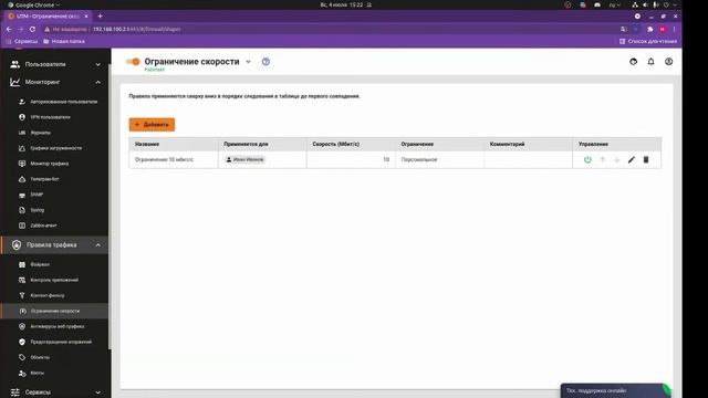 Ограничение скорости в Ideco UTM