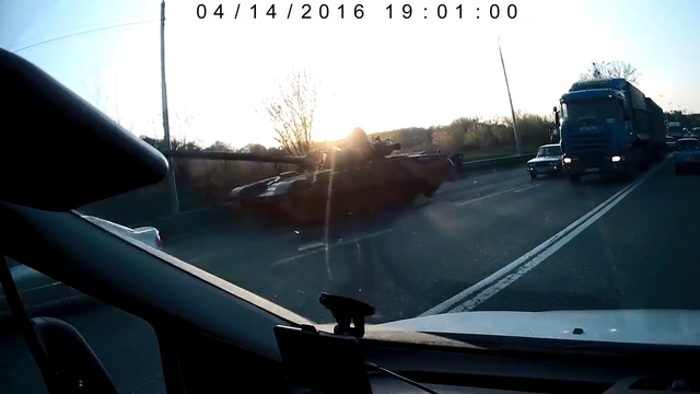 В Киеве на улице Заболотного 14 апреля 2016 года были замечены танки, перекрывшие движение в направлении выезда из города.