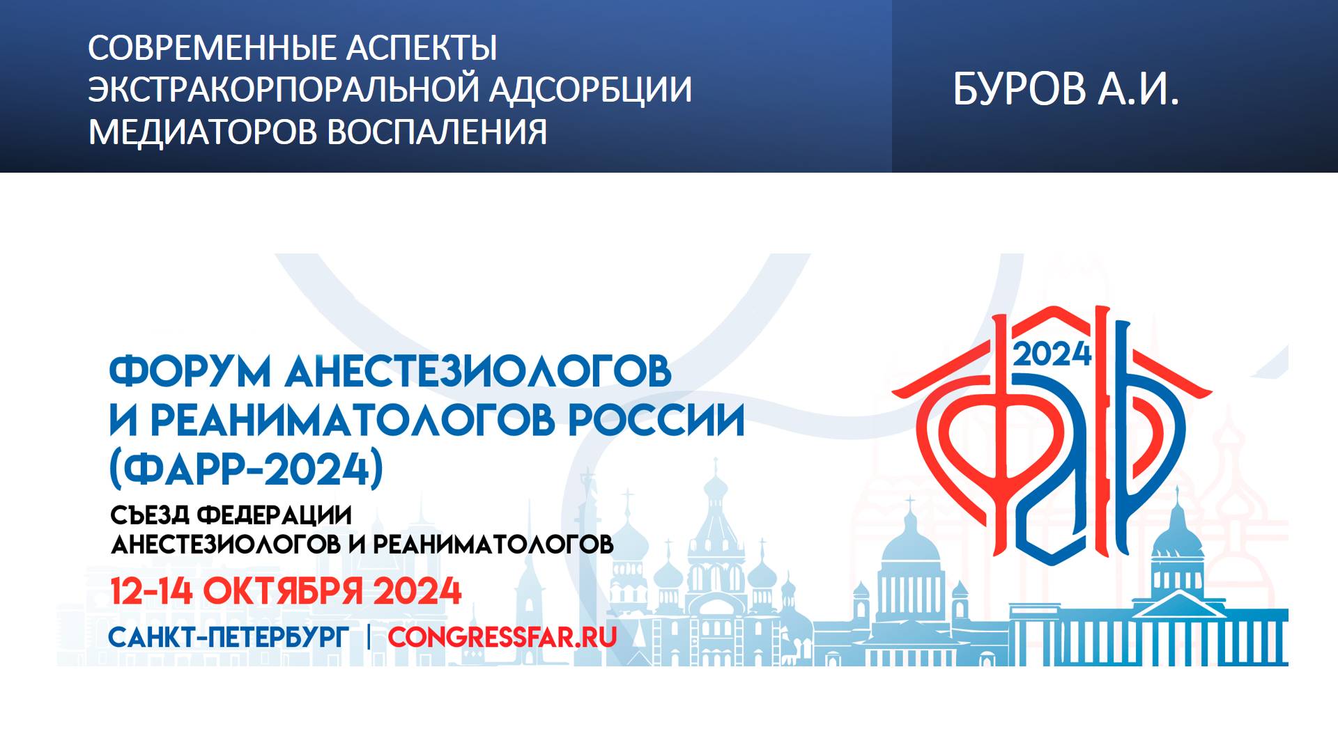 Видеозапись ФАРР-2024, XXII съезд Федерации анестезиологов и реаниматологов 12-14 октября 2024, Санкт-Петербург. Александр Ильич Буров "Современные аспекты экстракорпоральной адсорбции медиаторов воспаления" Информация, размещенная на канале, предназначена исключительно для медицинских специалистов