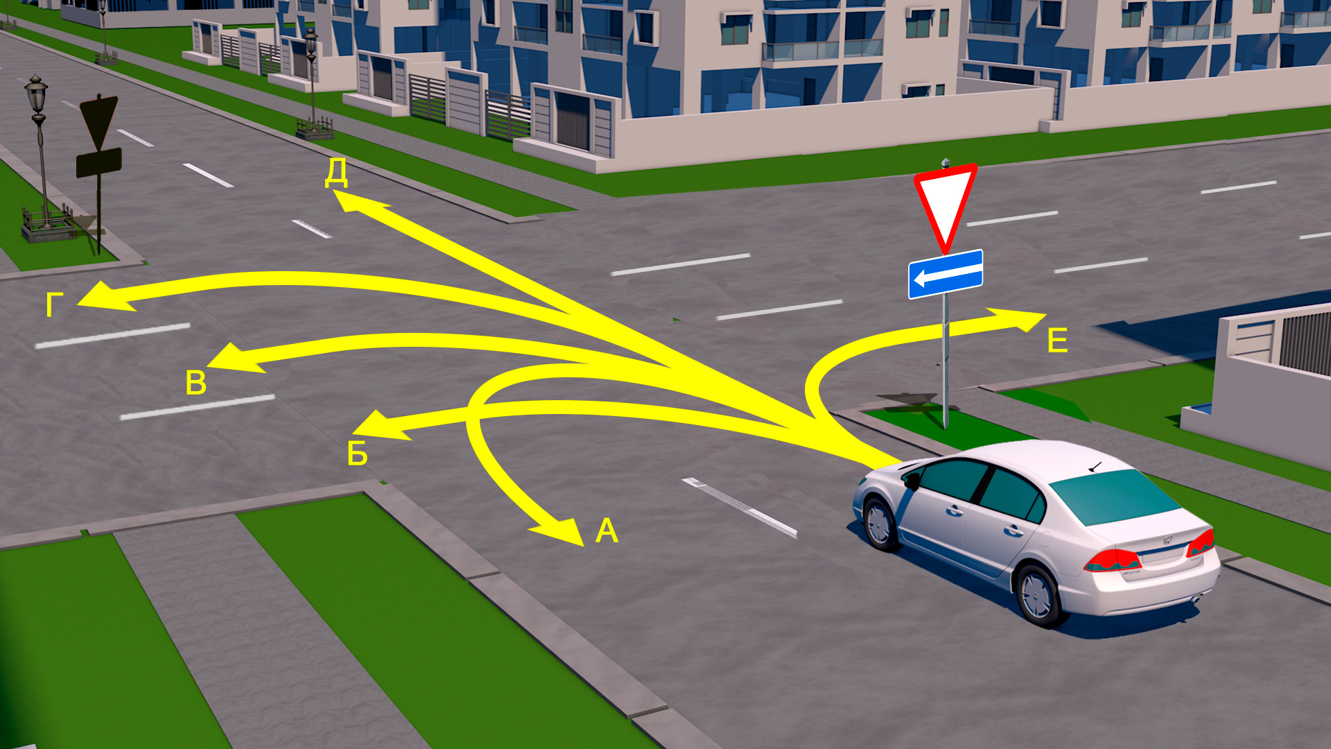 Среди множества предложенных траекторий, вам необходимо найти ту, движение по которой нашему водителю запрещено. Решите эту задачу сами и поделитесь ею с друзьями. Смогут ли они ответить дать правильный ответ.