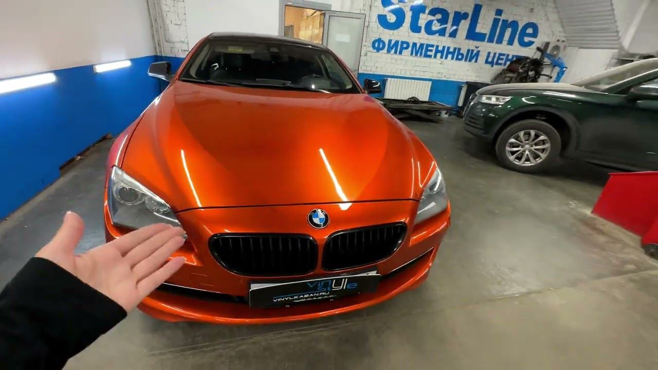 Наш сайт: https://vinylkazan.ru/ А вот и доказательство надёжности виниловой плёнки. Год назад к нам на смену цвета приезжала уже оклеенная в красный глянец BMW 6 series. Мы тогда переклеили её в оранжевый цвет, крышу - в чёрный полиуретан. За время эксплуатации плёнка нигде не отошла, всё идеально, а значит наша работа уже заслуживает похвалы! В этот приезд сделали автомобиль сочным не только снаружи, но и внутри. Передний ряд сидений сильно потрепался, заводская обивка лопнула. Перетянули сидения под оригинал в структурную экокожу, по центрам - перфорация. От перетяжки подголовников владелец отказался. Яркими акцентами в данной работе стали оранжевые ремни безопасности и нитка на сидениях.